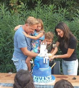 وقد ظهرت الممثلة وهي تقطع قالب الحلوى مع ابنها وابنتها هافن وزوجها هادي أسمر.