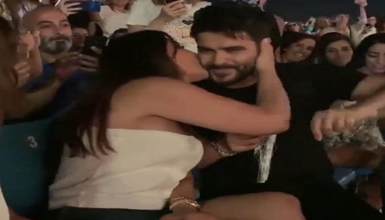 وطلب من الجمهور التصفيق للنجمة اللبنانية التي طبعت على خده قبلة، ليبادلها التحية بقبلة على يديها.