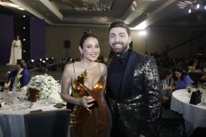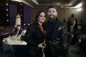 الفنانة و الانفلونسر روان بن حسين التي كرمت من قبل الدكتور علي جرادي ايضا برفقة صاحبة ABfashion مصممة الازياء امال بحمد .