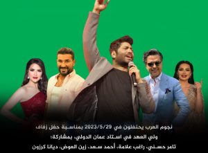 تحتفل باقة من ألمع نجوم الوطن العربي بالأردن والأردنيين في حفلة مجانية تقام بإهداء من الأشقاء العرب . شاركونا الفرحة في ستاد عمان الدولي في المدينة الرياضية