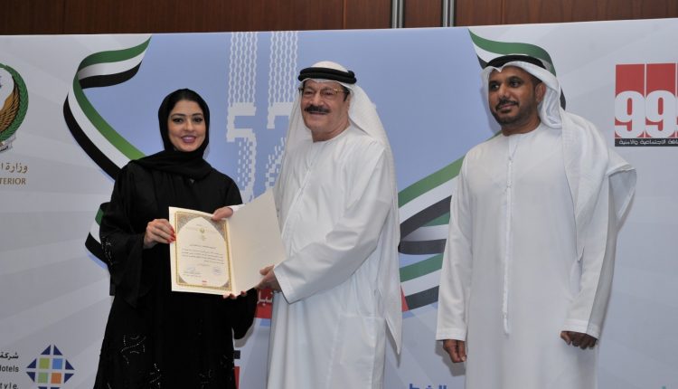 كرمت مجلة 999 الصادرة عن وزارة الداخلية الدكتورة سمر الشامسي ضمن حفل مميز بمناسبة عيد الاتحاد الثاني والخمسين لدولة الإمارات العربية المتحدة والذي اقيم هذا العام تحت شعار “الامارات نحو مستقبل مستدام “ في فندق روزوود بحضور سعادة خليل بدران رئيس لجنة تطوير مجلة “999” والعقيد عوض صالح الكندي رئيس تحرير المجلة، وعدد من ضباط وزارة الداخلية والقيادات العامة للشرطة في الدولة، و نخبة من الشخصيات.