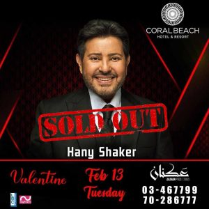 مجدداً امير الغناء العربي هاني شاكر يحصد العلامة الكاملة … بات امير الغناء العربي هاني شاكر من اكثر الفنانين العرب احياءً للحفلات في لبنان،وذلك بعد سلسلة نجاحات حققها خلال العامين الماضيين في لبنان من خلال الحفلات التي أحياها في عدة مناطق لبنانية منها صور ، صيدا، بيروت، جونية، ضبية، طبرجا، وطرابلس..وها هو يكتسح بورصة عيد العشاق في لبنان متفوقاً وحاصداً الصولد آوت . أما جمهوره الوفي والمحب سيكون على موعد معه في١٣ شباط وذلك في فندق كورال بيتش – بيروت مع واحدة من أقوى حفلات لبنان….نجاحات هاني شاكر في لبنان لم تأتِ من فراغ إنما نتيجة عدة عوامل أولها : تألق أمير الغناء وحفاظه على خامة صوته ونجوميته منذ اكثر من خمسين عاماً