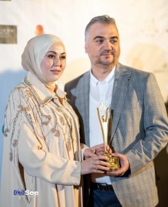 وبناء عليه: تم تكريم سيدة الاعمال ومزينة المشاهير صاحبة بيوتي عائشة ماجيك بجائزة ذهبية عن أفضل مزينة مشاهير .