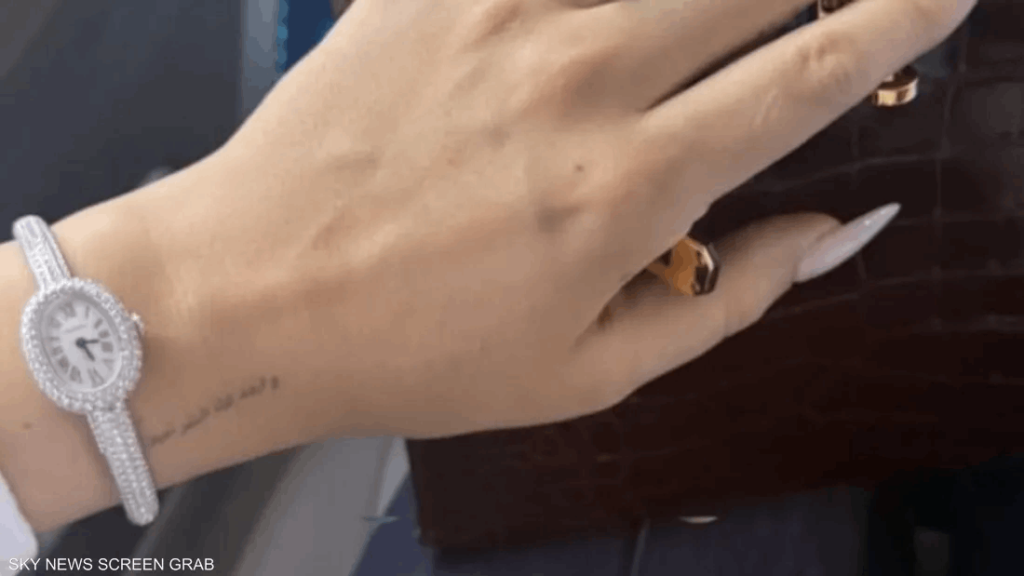 وأظهرت الصورة جورجينا وهي تمسك حقيبة بنية فاخرة بيدها اليسرى، التي تزيّنت بخاتم ماسي ضخم وساعة مرصعة بالألماس، فيما بدا الوشم العربي واضحًا أسفل معصمها.