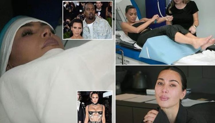 وظهرت كيم كارداشيان في إحدى المستشفيات وهي تُنقل إلى جهاز تصوير بالرنين المغناطيسي، بينما تظهر الصور الدماغية على الشاشة.