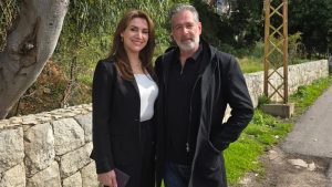 بالصورة يورغو شلهوب والإعلامية د. علا القنطار خلال تصوير مسلسل “المحافظة 15”